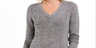 Charter Club Women's Marled V Neck Sweater Black Size Petite XL