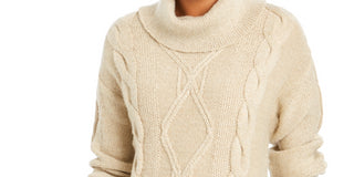 Charter Club Women's Cowl-Neck Cable-Knit Glitter Sweater White Size Medium