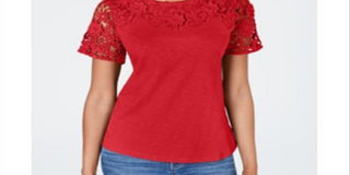 Charter Club Women's Petite Cotton Embroidered T-Shirt Risky Red Size Petite S