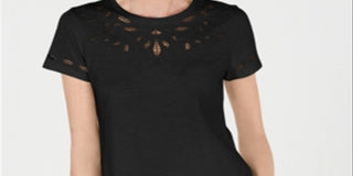 Charter Club Women's Cutout Cotton T-Shirt Black Size X-Large