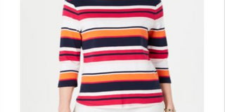 Charter Club Petite Cotton Striped Boat-Neck Top Pink Size Petite L