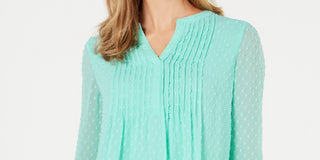 Charter Club Women's Double Ruffle Textured Pintuck Top Mint Size Large