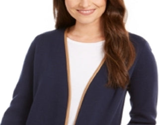 Charter Club Women's Milano Cotton Completer Sweater Blue Size Petite