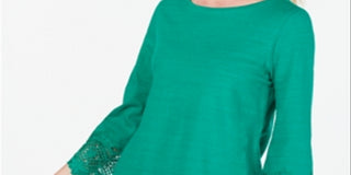 Charter Club Women's Cotton Lace Trim Top Green Size Petite Small