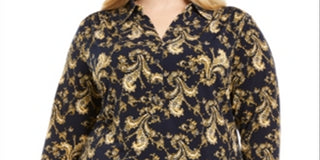 Charter Club Women's Plus Paisley Polo Style Shirt Blue Size 2X