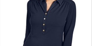 Charter Club Women's 3/4 Sleeve Polo Top Blue Size Petite XL