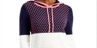 Charter Club Women's Colorblocked Sweater Hoodie Blue Size Petite Medium