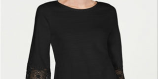 Charter Club Women's Lace Sleeve Top Black Size Petite Small