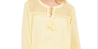 Charter Club Women's Tassel Tie Eyelet Linen Top Yellow Size X-Large