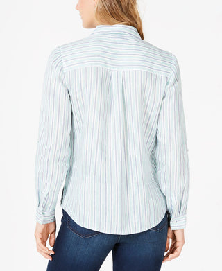 Charter Club Women's Linen Striped Cuffed Shirt White Size XX-Large