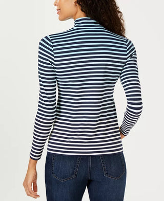 Charter Club Women's Striped Half Zip Top White Size Medium
