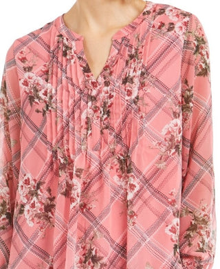 Charter Club Women's Printed Split Neck Top Pink Size Medium