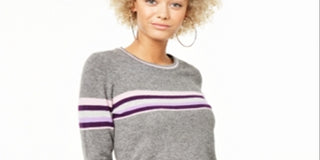 Charter Club Women's Striped Cashmere Sweater Gray Size XS