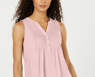 Charter Club Women's Sleeveless Pintuck Blouse Pink Size Medium