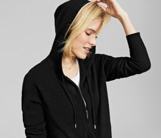 Charter Club Women's 100% Cashmere Zip Hoodie Black Size X-Large