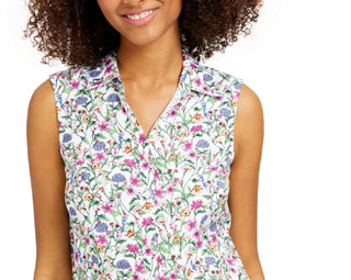 Charter Club Women's Floral-Print Sleeveless Shirt White Size 18
