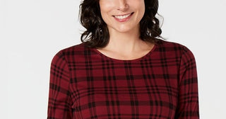 Charter Club Women's Cotton Plaid Top Red Size Extra Small