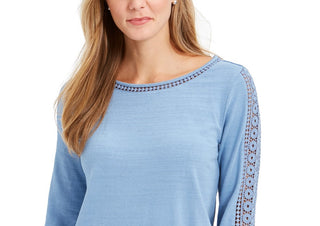 Charter Club Women's Crochet-Inset Top Blue Size Extra Large