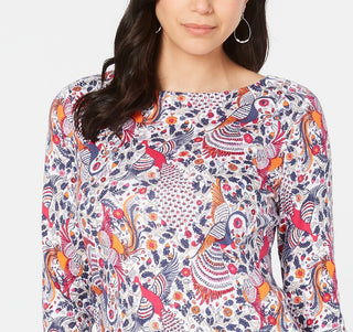 Charter Club Women's Pima Cotton Printed Boat-Neck Top White Size Extra Large