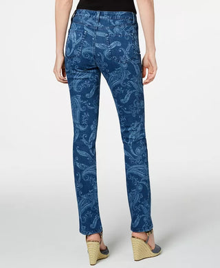 Charter Club Women's Paisley-Print Straight-Leg Jeans Med Blue Size 16
