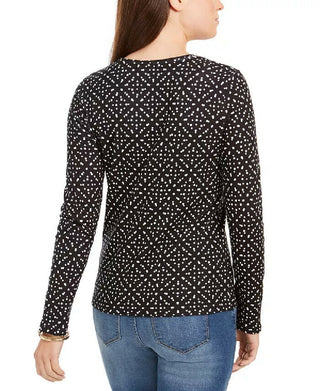 Charter Club Women's Dot Print Pima Cotton Top Black Size Small