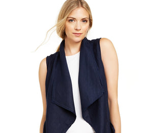 Charter Club Women's Frayed-Trim Linen-Blend Draped Vest Blue Size Extra Large