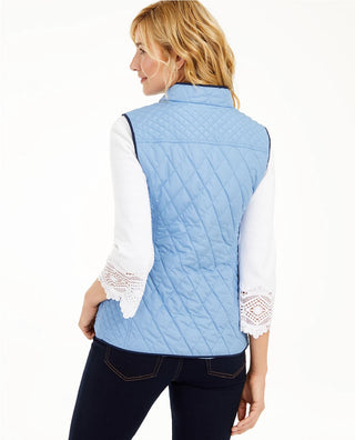 Charter Club Women's Quilted Stand Collar Vest Blue Size XX-Large