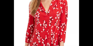 Charter Club Women's Floral V-Neck Blouse Medium Red Size XX Large