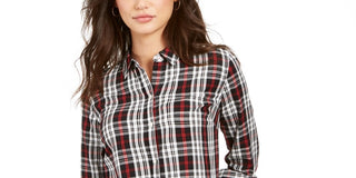 Charter Club Women's Cotton Plaid Shirt Black Size X-Large