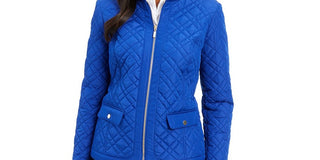 Charter Club Women's Quilted Mandarin Collar Jacket Blue Size X-Small