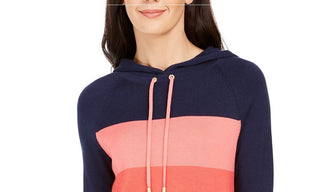 Charter Club Women's Striped Hooded Sweater Intrpd Blue Cmb Size 2 Extra Large