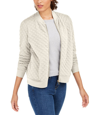 Charter Club Women's Textured Knit Bomber Jacket White Size Extra Large