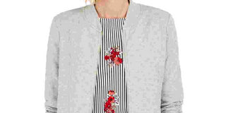 Charter Club Women's Textured Knit Bomber Jacket Gray Size Large