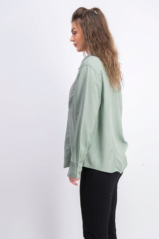 Charter Club Women's Woven Solid Tencel Shirt Green Size X-Large