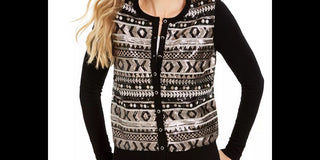 Charter Club Women's Sequined Fair Isle Cardigan Black Size X-Large