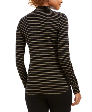 Charter Club Women's Striped Mock Neck Top Black Size XX-Large