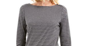 Charter Club Women's Petite Metallic Striped Top Gray Size Petite Large