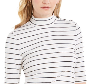 Charter Club Women's Striped Mock-Neck Top White Size XX-Large