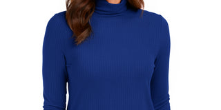 Charter Club Women's Heathered Ribbed Turtleneck Top Blue Size Small