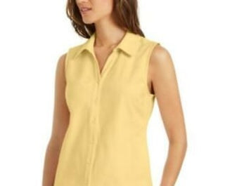 Charter Club Women's Cotton Pique Sleeveless Shirt Yellow Size 12