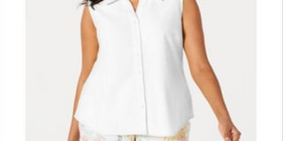Charter Club Women's Cotton Pique Sleeveless Shirt Green Size 18