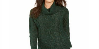 Charter Club Women's Cowl Neck Cable Knit Glitter Sweater Green Size X-Small
