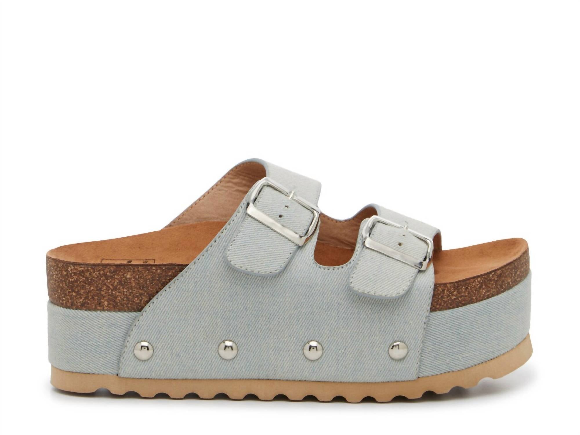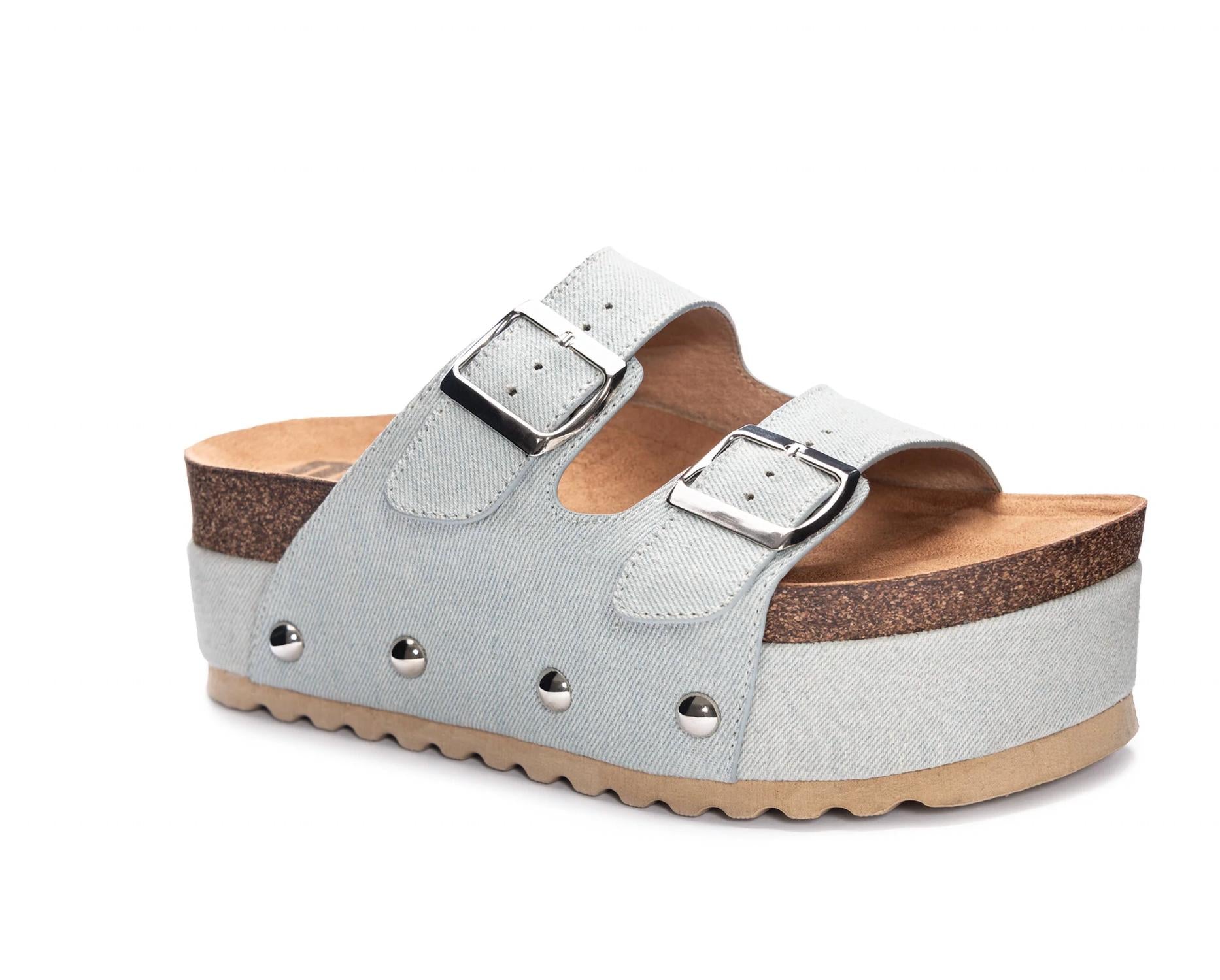Flowy dresses, cropped pants, and even jumpsuits... this sandal works with them all! Step out in style with the Women's Pueblo Platform Sandal by Chinese Laundry in chic Light Denim. Crafted from denim and synthetic materials, this sandal features adjustable straps and a slip-on platform design with an open, round toe. A 2 1/2" platform heel offers a fashionable lift without compromising comfort. Perfect for summer days, this sandal lets you embrace a bold, unapologetic look.