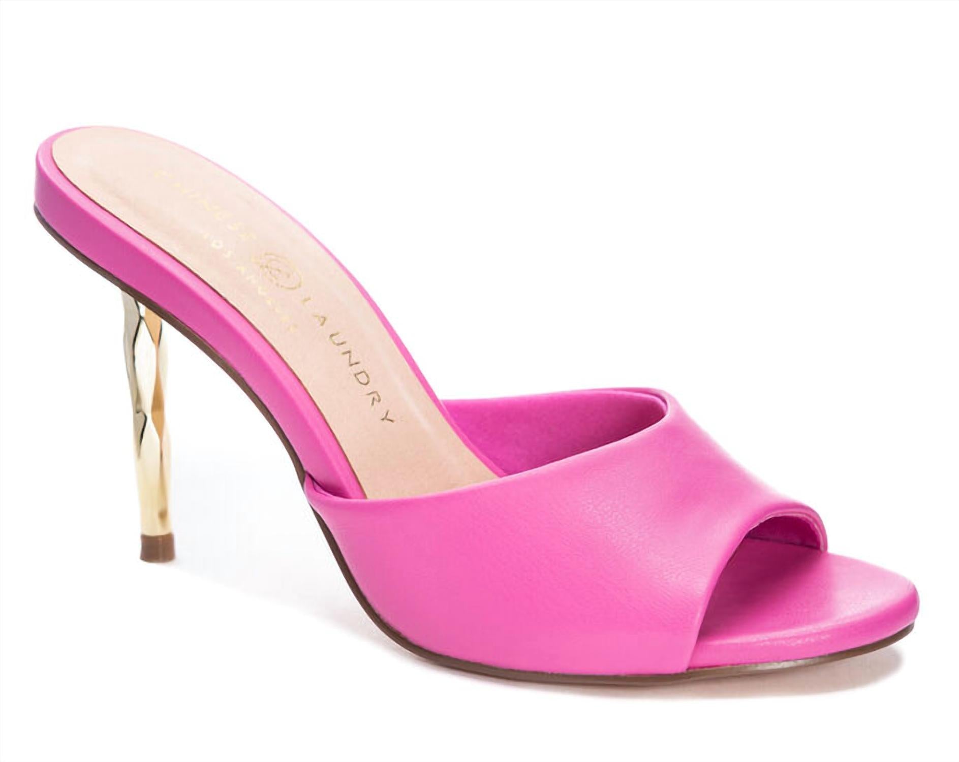 The perfect height for day to night. Make a chic statement with the Women's Rhonda Dress Heels by CHINESE LAUNDRY, featuring a suede upper in vibrant Fuchsia Smooth. These dress heels boast an open toe design and a striking 3.75-inch stiletto heel, perfect for elevating any outfit. Lined with leather and equipped with a lightly padded footbed, they promise comfort alongside style. Crafted with a synthetic outsole and wrapped heel, these imported heels are ready to step out in confidence.