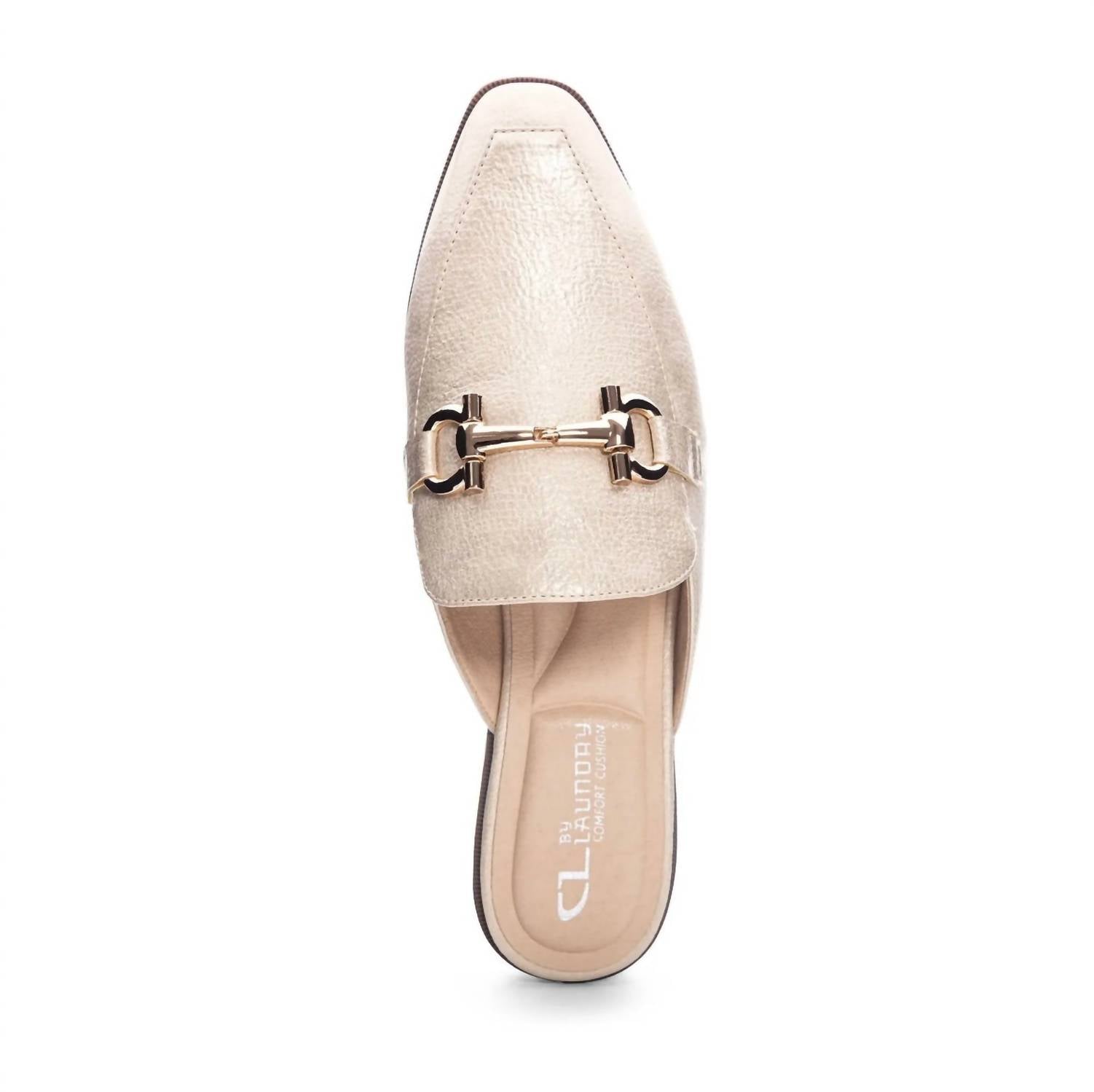 Slip them on and go! Classic dress mule with metal horse-bit detailing. Backless slide for superior comfort and elevated style. Manmade materials throughout. 1" heel.