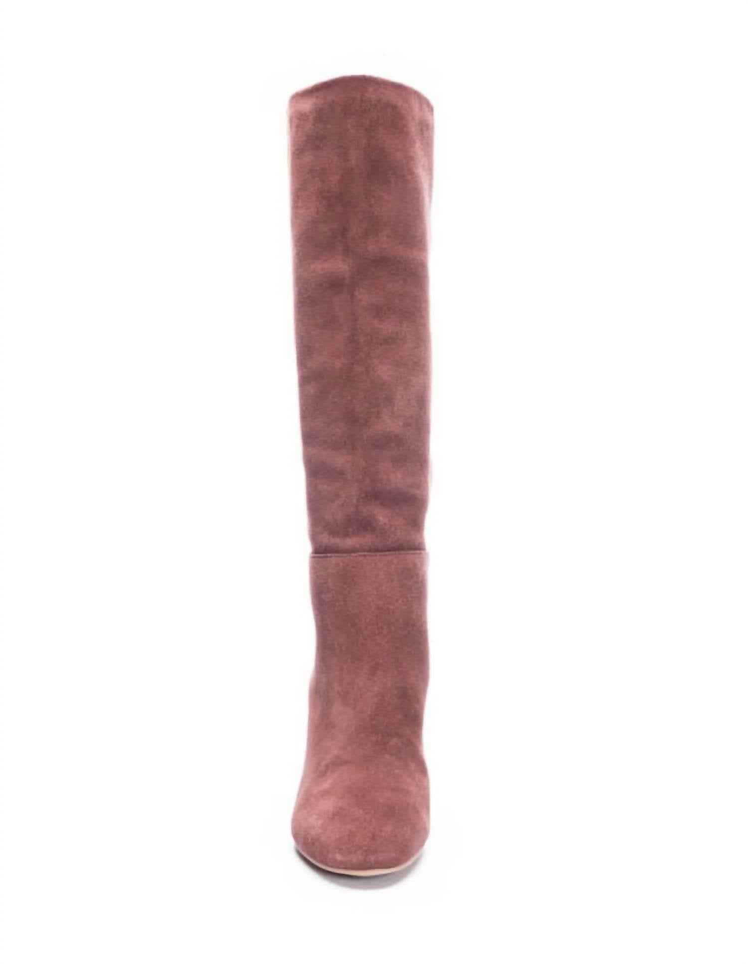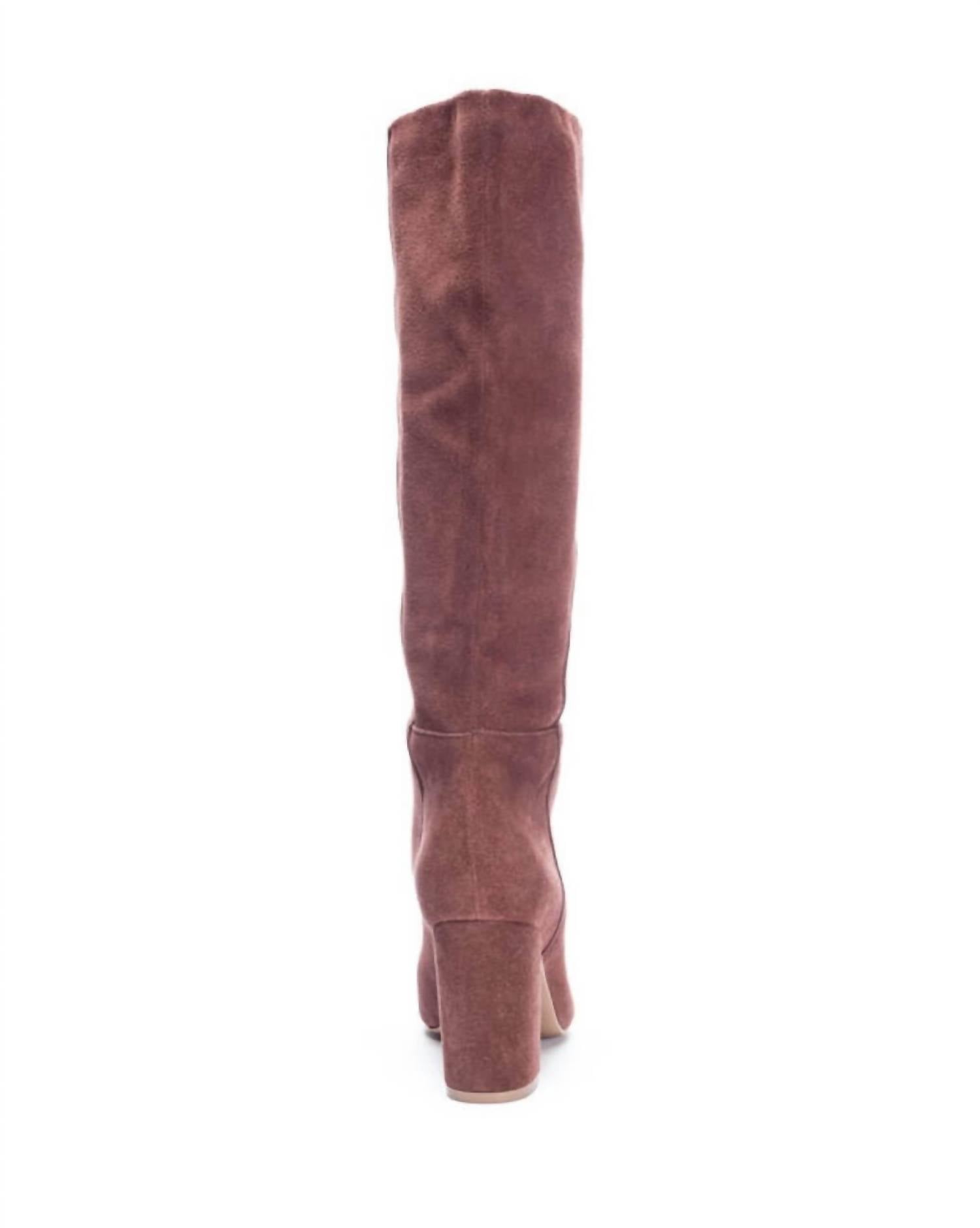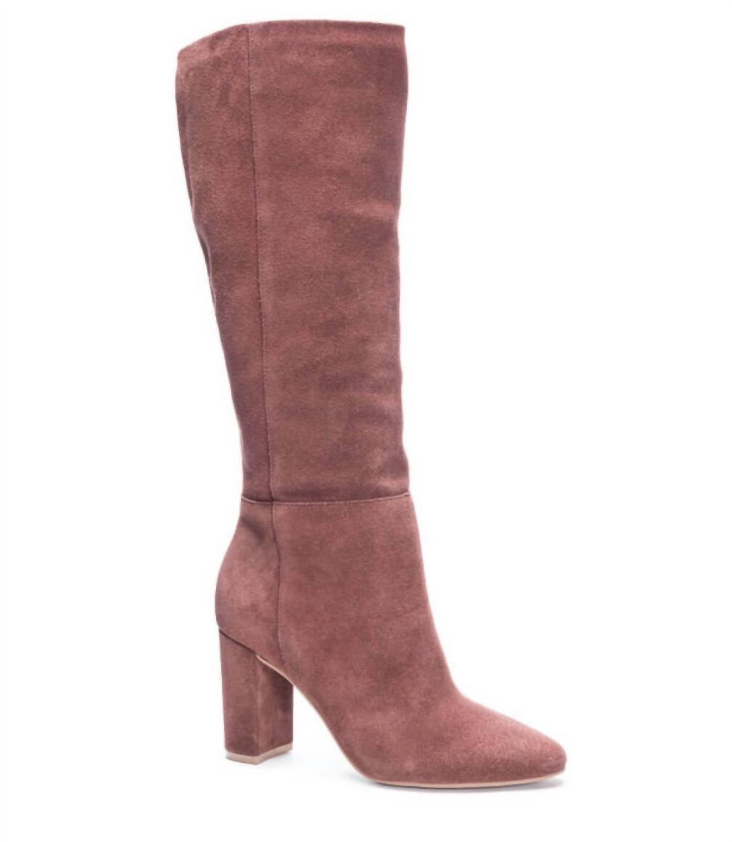 Step out in confidence and showcase your impeccable taste with these fashionable and versatile boots. Their classic style will have you reaching for these boots season after season. Introducing the Kadance Women's Suede Knee High Boots by Chinese Laundry, the perfect pop of color for your autumn wardrobe. These chic red boots feature an almond toe and a high 3.75" block heel, offering a stylish lift. Crafted with synthetic suede for the upper and lined with textile for comfort, they boast a knee-high shaft measuring 15" with a 14.75" calf circumference. Designed for a snug fit, they run half a size small, so consider ordering up for optimal comfort.