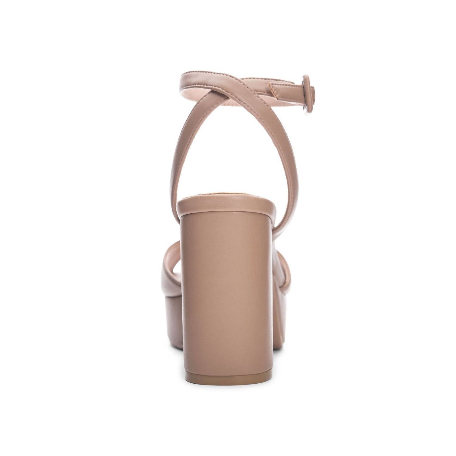 Don't be deceived, these heels are comfy as can be. Enhance your closet with the Women's Theresa Platform Sandal by Chinese Laundry, an elegant addition in taupe. These sandals feature an open toe design, a substantial 3.75" chunky block heel, and a 1.25" platform for added height and comfort. The criss-cross buckled ankle strap ensures a feminine and timeless touch. Made from manmade materials, this stylish pair is perfect for any occasion.