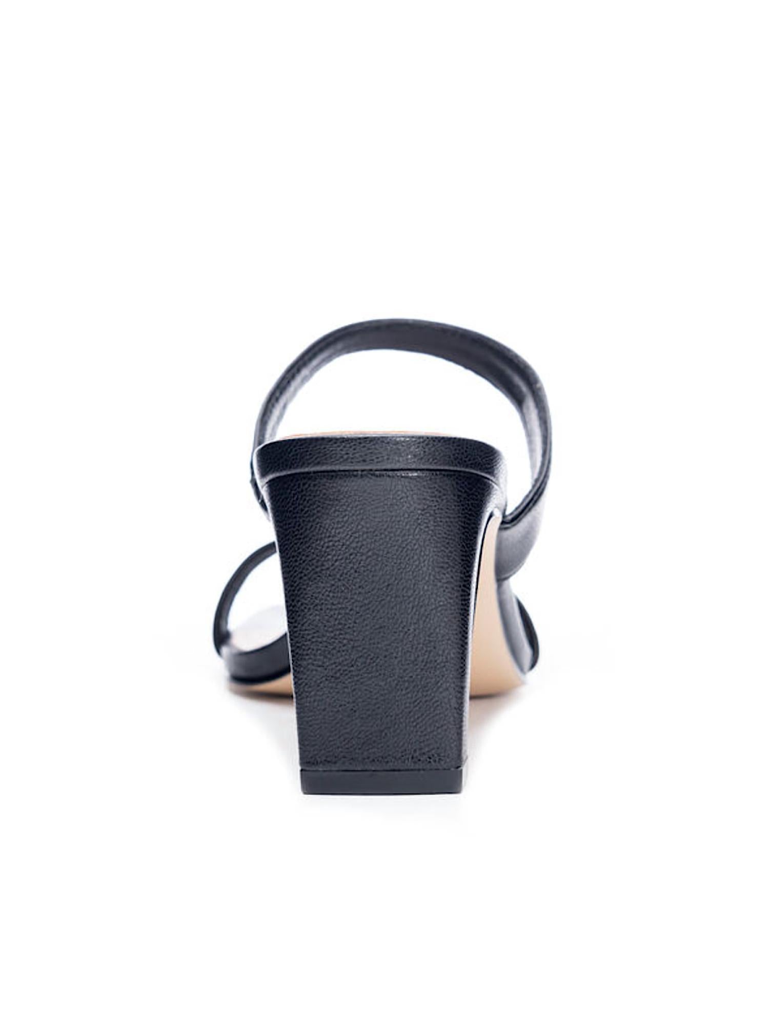 Flowy dresses, cropped pants, and even jumpsuits... this sandal works with them all! Step into style with the Yanti Heeled Sandal by CHINESE LAUNDRY, boasting a sophisticated black faux leather design. Perfect for any occasion, these sandals feature a slip-on entry, a stylish squared open toe, and a chic 3-inch block heel. The soft synthetic upper and lightly padded footbed ensure comfort, while the durable synthetic outsole provides long-lasting wear. Embrace elegance and ease with these must-have women's sandals.