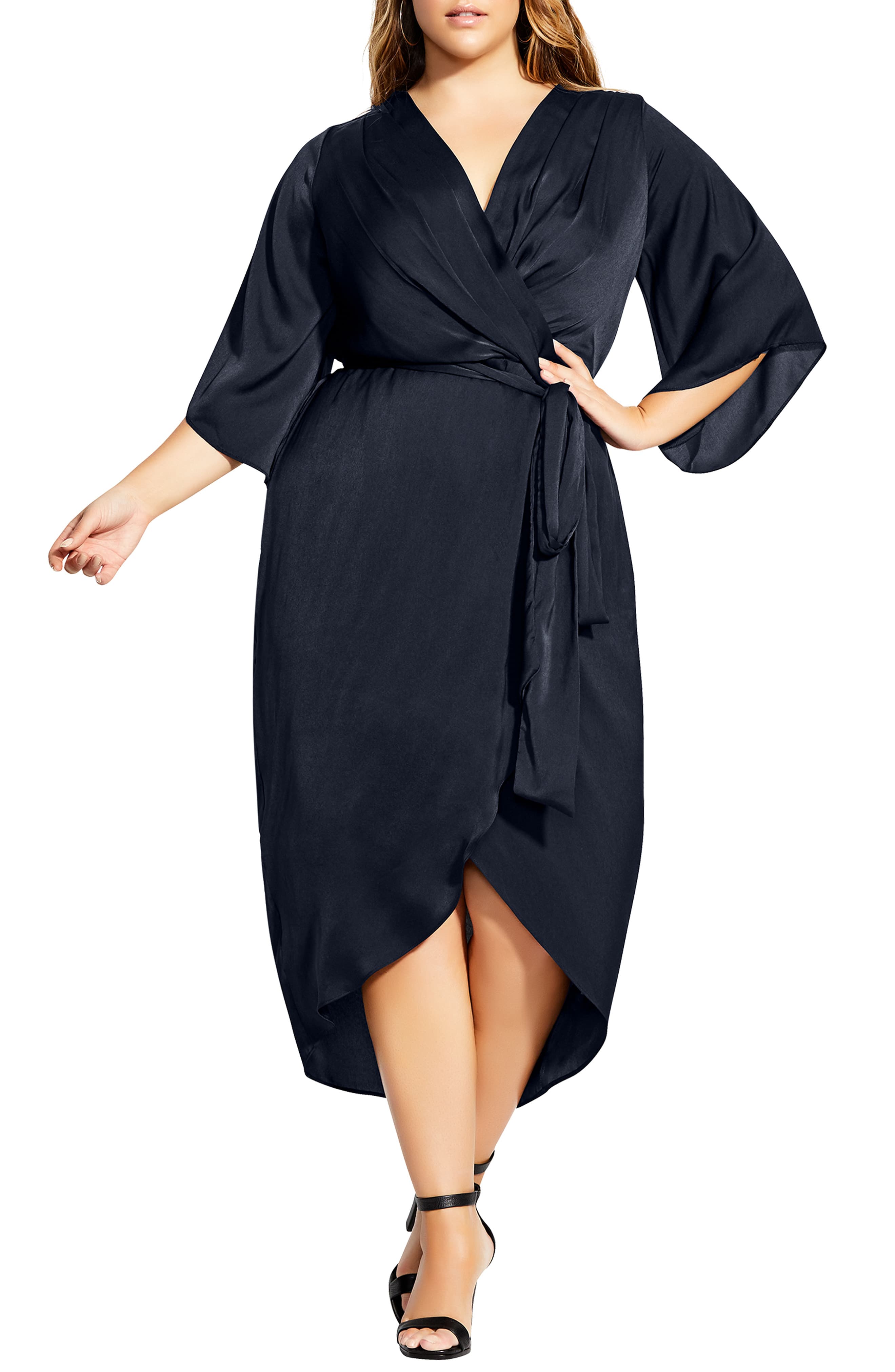 Luxe styling all wrapped up in City Chic's stunning Opulent Dress. | Approx. length; 49| V-neck; Faux-wrap silhouette| Self tie wrap closure with elastic waist | Short kimono sleeves| Faux wrap skirt| Please note that this item has International Sizing. Please see US Sizing Conversions noted here that will appear on the merchandise tag when received; 14W= XS