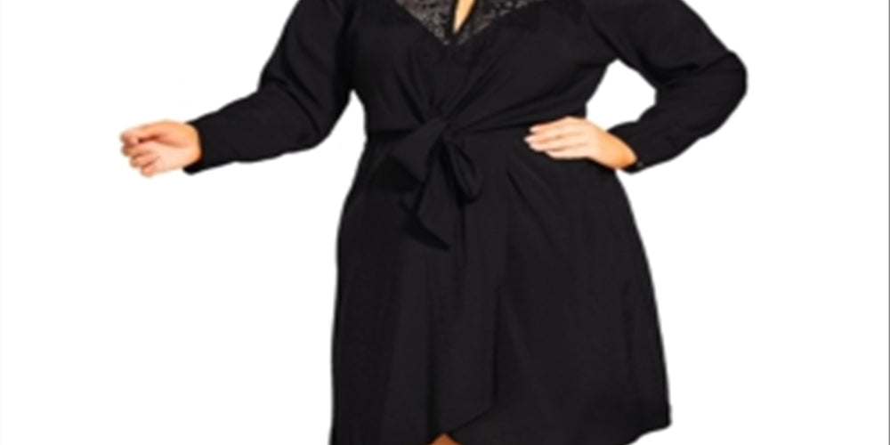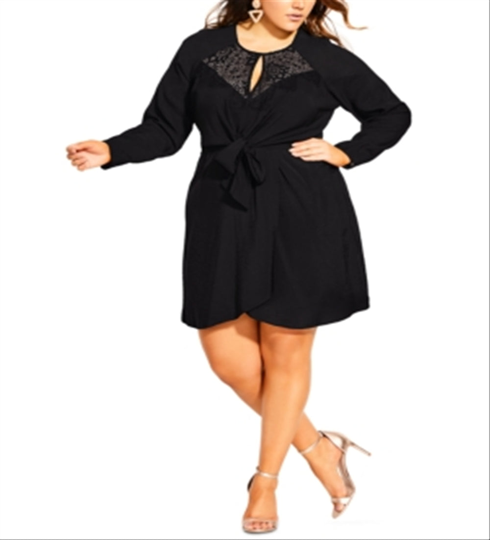 City Chic Women's Plus Lace Trim Sleeveless Mini Dress Black Size 20W